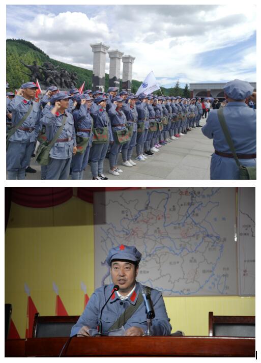 前往六盤山途中,黨員們開展了唱紅歌、講紅色故事、朗誦紅色詩(shī)詞等活動(dòng),現(xiàn)場(chǎng)氣氛十分熱烈;到達(dá)六盤山后,黨員們穿紅軍服,接過紅一、二、四方面軍軍旗,沿著象征著紅軍二萬(wàn)五千里長(zhǎng)征的紅軍小道,途中經(jīng)過紅軍長(zhǎng)征經(jīng)歷的“遵義會(huì)議”、“四渡赤水”、“飛奪瀘定橋”、“巧渡金沙江”、“紅軍過草地”、“天險(xiǎn)臘子口”等大事件微縮景觀。在六盤山頂峰廣場(chǎng)三軍會(huì)師紅旗墻前,全體黨員重溫了入黨誓詞,列隊(duì)進(jìn)入紅軍長(zhǎng)征紀(jì)念館。在紀(jì)念館里,大家合唱了紅歌《歌唱祖國(guó)》,上了一次別開生面的黨課,在講解員的帶領(lǐng)下參觀革命文物陳設(shè)。再一次重溫了黨的光輝歷程,接著同志們就地吃了一頓紅軍餐,親身體驗(yàn)到了紅軍長(zhǎng)征的悲壯歷程和經(jīng)受的艱難困苦,感受偉大的長(zhǎng)征精神。