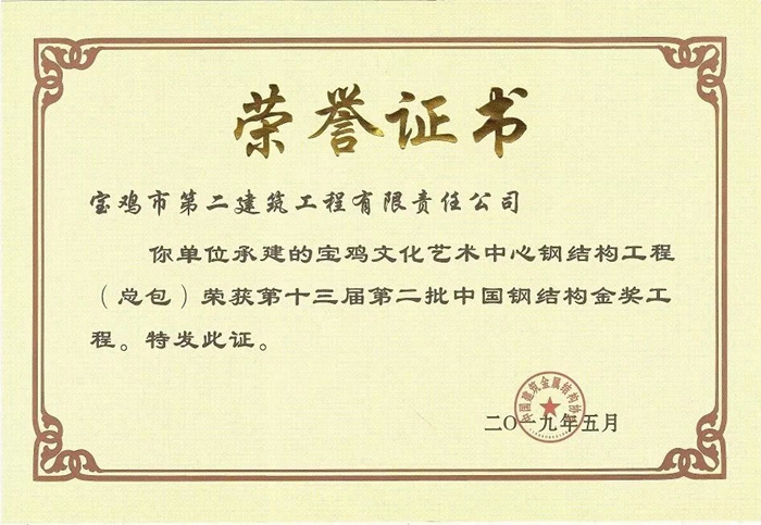 2019年中國(guó)鋼結(jié)構(gòu)金獎(jiǎng)工程(寶雞市文化藝術(shù)中心鋼結(jié)構(gòu)工程)