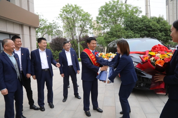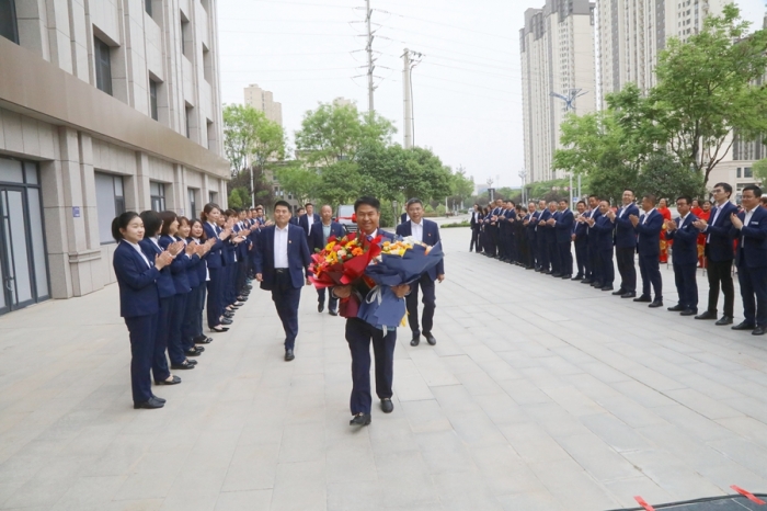 鑼鼓喧天報喜訊,鮮花掌聲迎勞模。集團公司高層領(lǐng)導(dǎo)、總部全體員工及三十九項目部員工在總部辦公大樓前迎接寶雞市五一勞動獎?wù)芦@得者李紅軍同志載譽歸來。