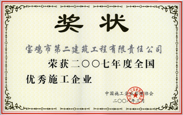 2007年全國(guó)優(yōu)秀施工企業(yè)