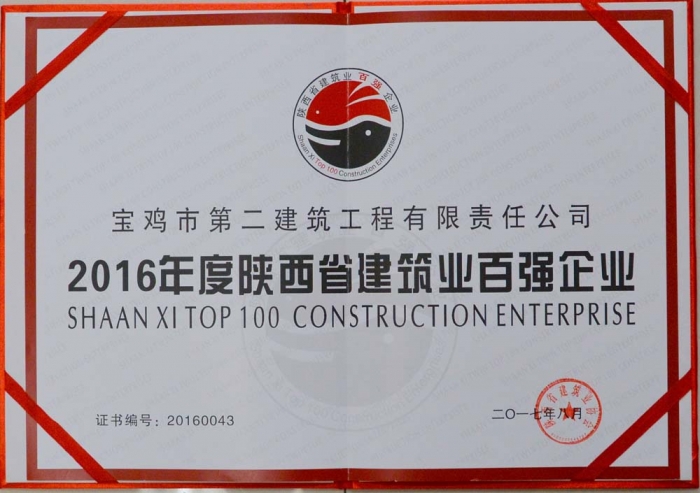 2016年陜西省建筑業(yè)百?gòu)?qiáng)企業(yè)