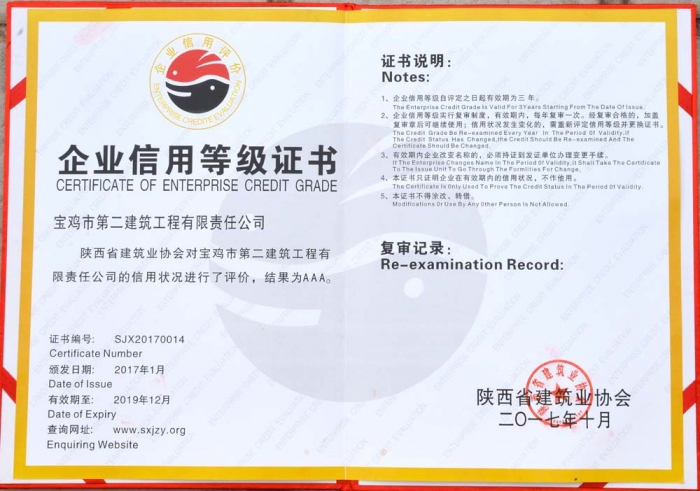 2017年陜西省AAA級信用企業(yè)